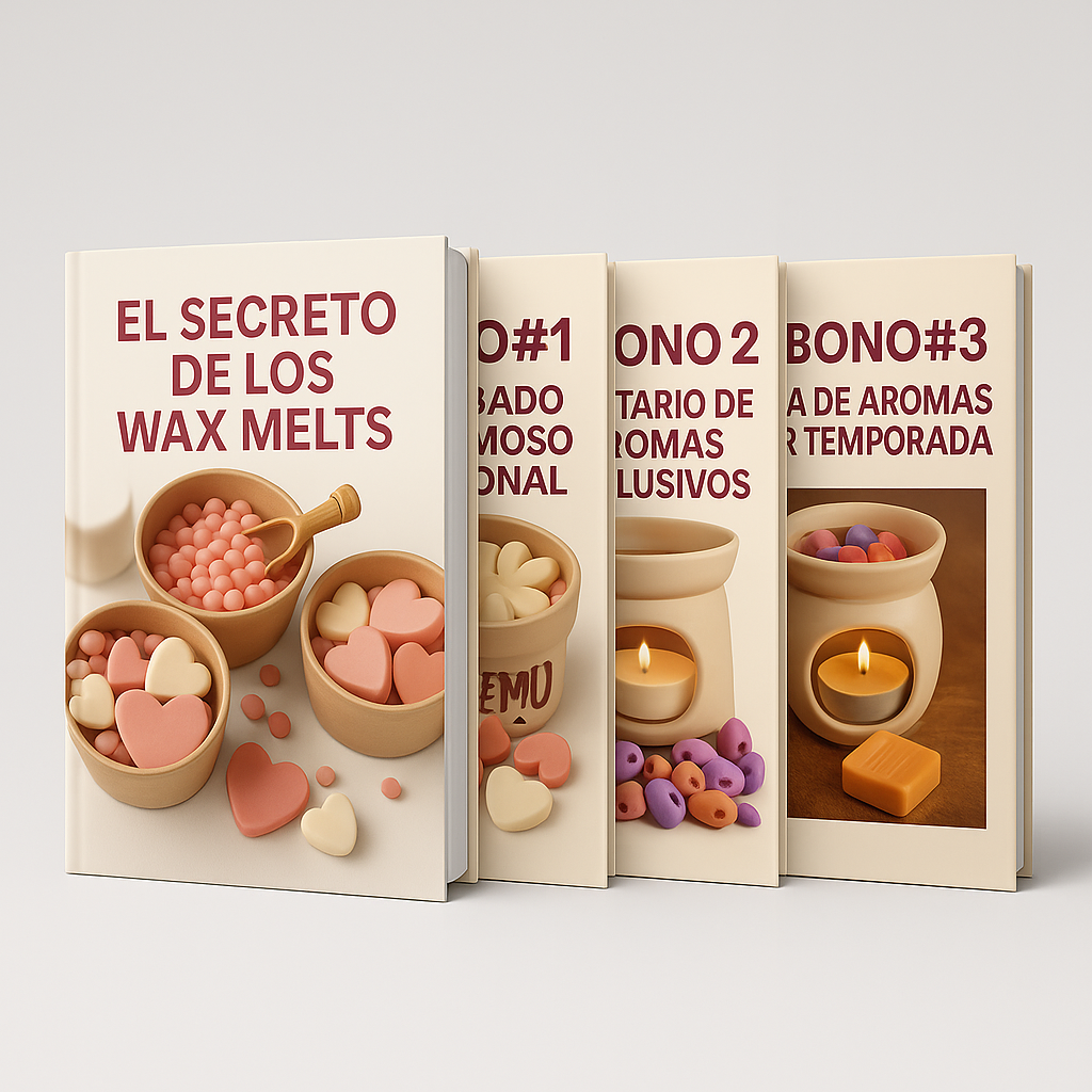Es un material descargable que te revela el paso a paso para crear y vender Wax Melts artesanales — productos aromáticos hermosos que huelen, brillan y se venden solos.